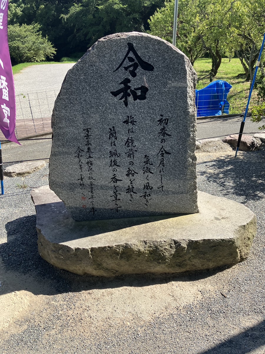 1,200 年余り前に編纂された日本最古の歌集「万葉集」におさめられている「梅花の歌三十二首」が太宰府で詠まれ、この歌の序文を引用し名付けられたのが元号「令和」です。